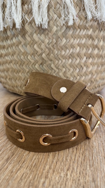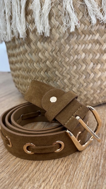 Cinturón de antelina en color marrón. 90cm