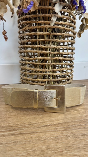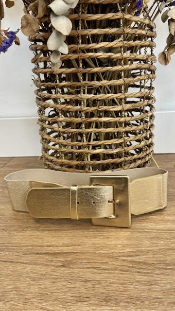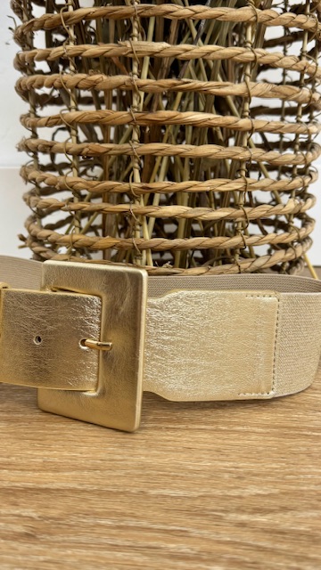 Cinturón elástico con hebilla rectangular en color dorado.70 cm.