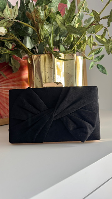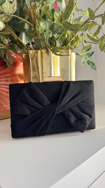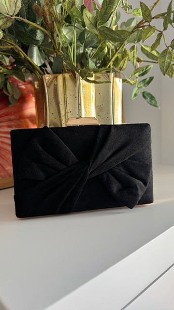 Clutch con lazada en la parte delantera en color negro.