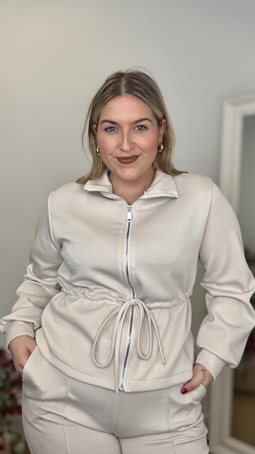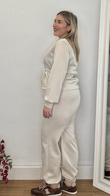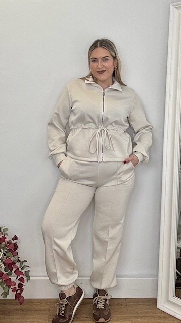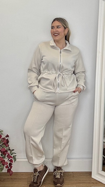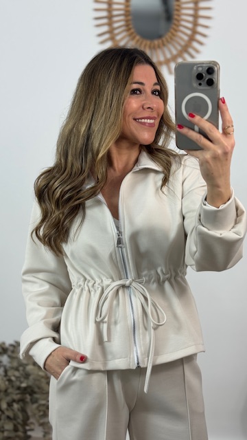 Conjunto de dos piezas deportivo en color beige . Talla única válida desde la 36 hasta la 42/44.