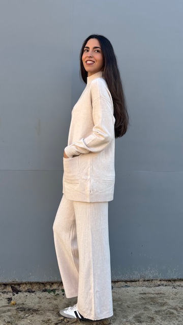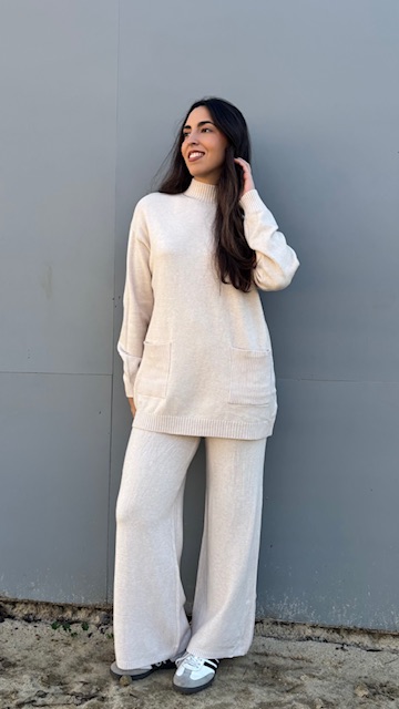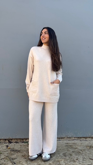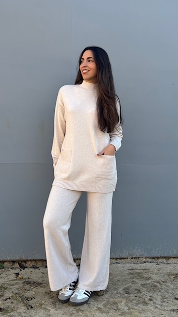 Conjunto confeccionado en tejido de punto en color beige. Talla única válida desde 36 hasta la 44.