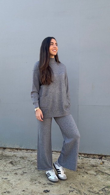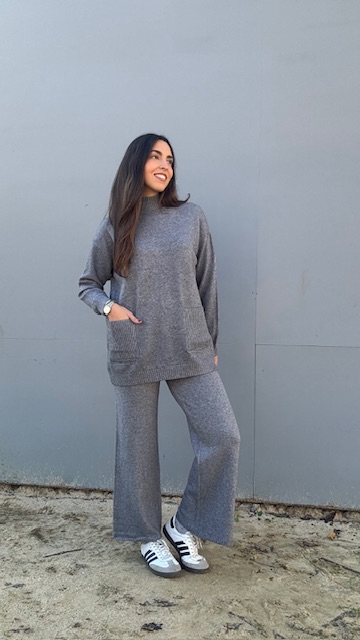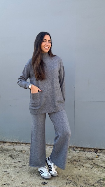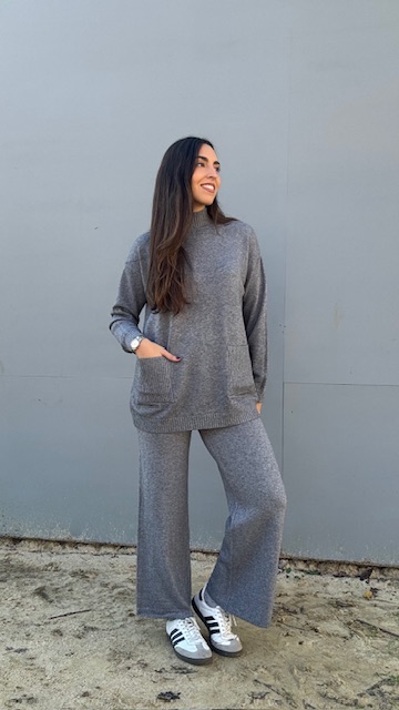 Conjunto confeccionado en tejido de punto en color gris. Talla única válida desde 36 hasta la 44.
