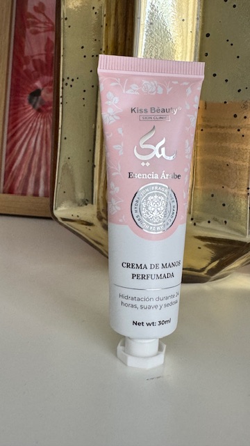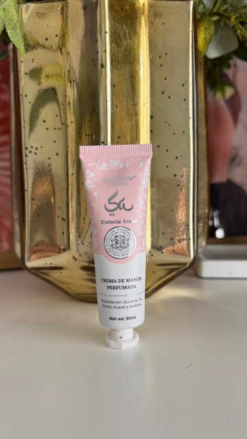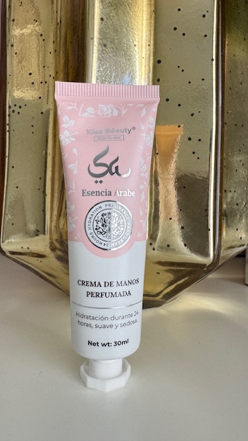 Crema de manos perfumada inspirada en el perfume árabe Yara de color rosa. Hidratación durante 24 horas, suave y sedosa. Tamaño de 30 ml.