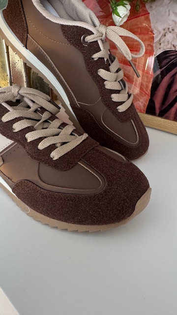 Deportivas en color marrón con detalle bordado a los laterales. Tallan normal.
