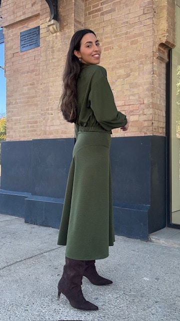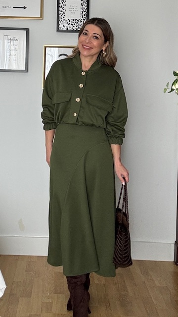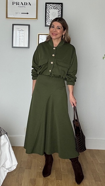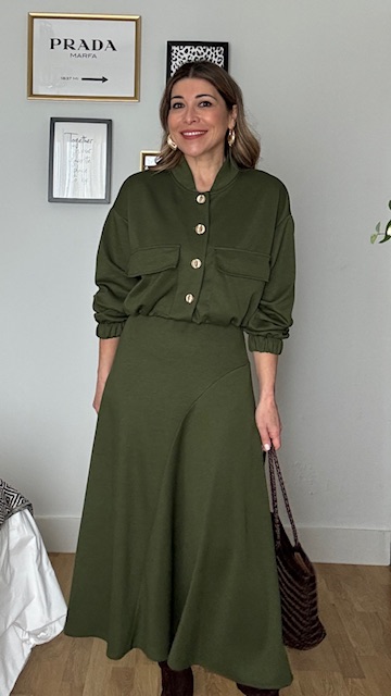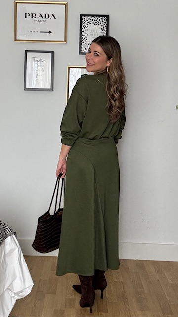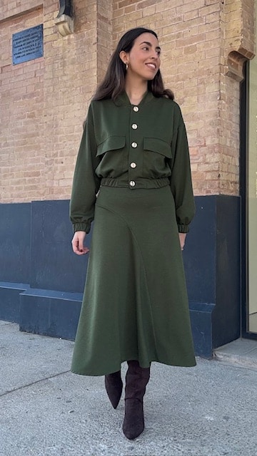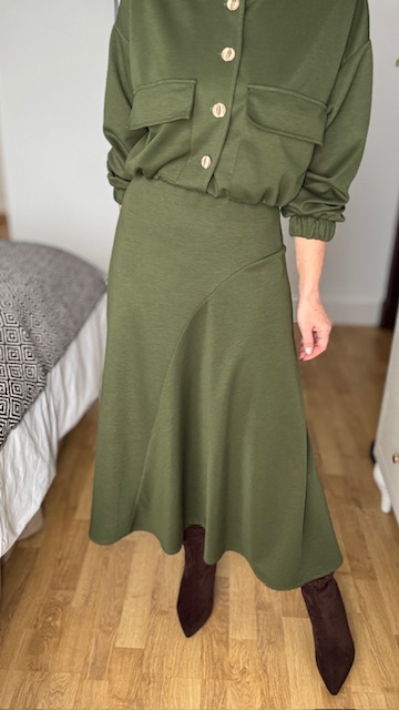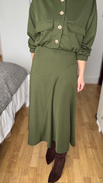 Falda capa midi en color verde caza . Talla única válida desde la 36 hasta la talla 44.