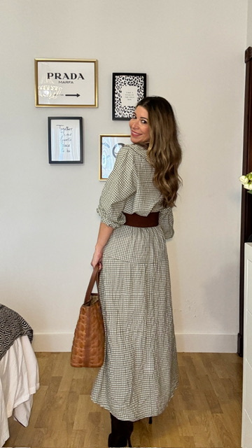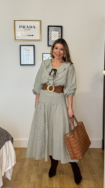 Falda de capa con estampado vichy en color verde caza y cinturilla elástica. Talla única válida desde la 36 hasta la 42/44.