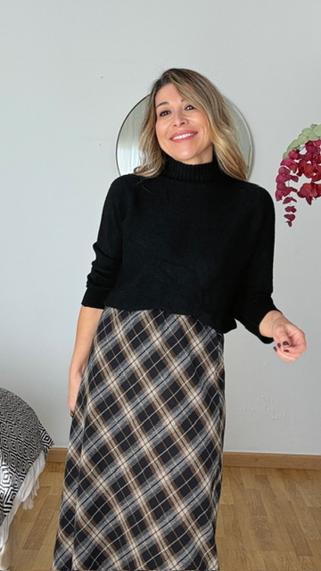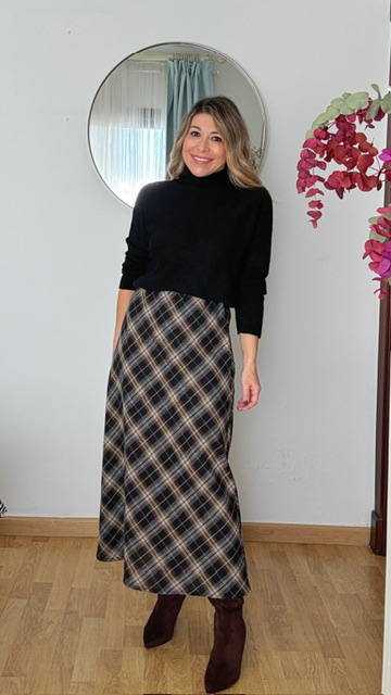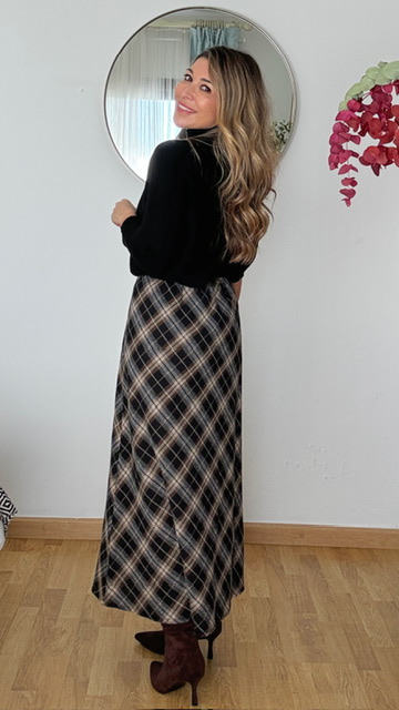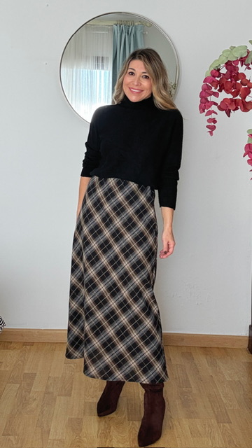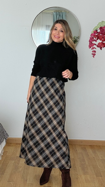 Falda midi evasé con cinturilla elástica. Talla única válida desde la 36 hasta la 40/42.