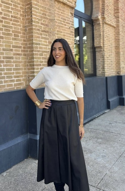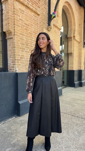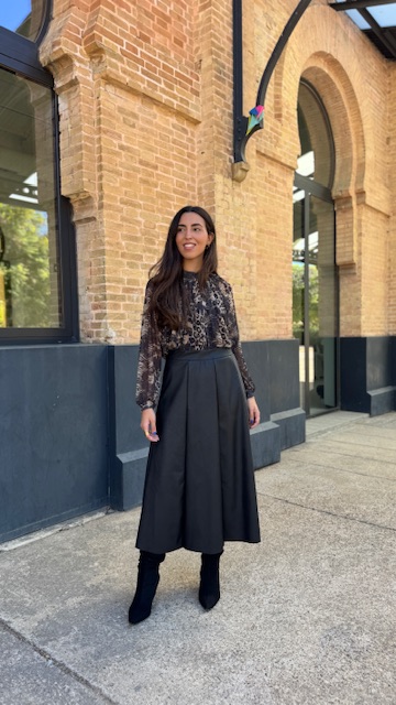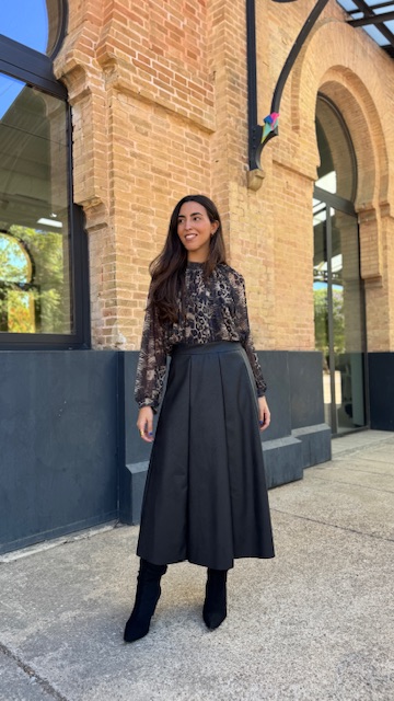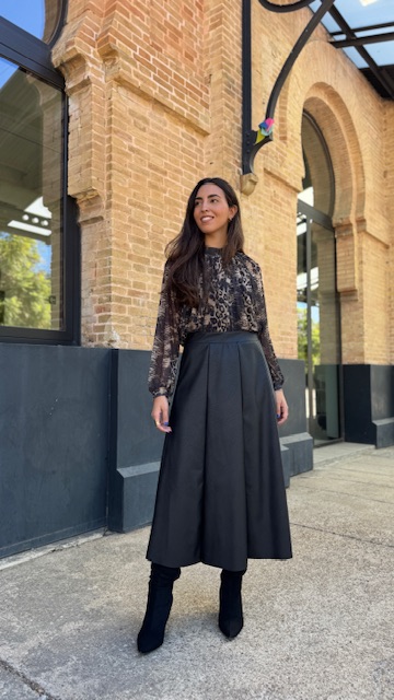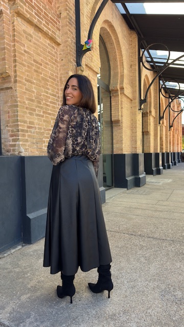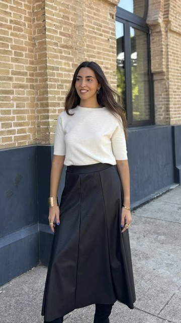 Falda de polipiel en color Negra. Talla única válida desde la 36 hasta la 42.