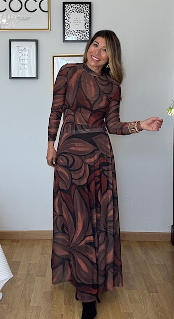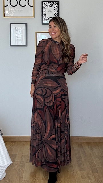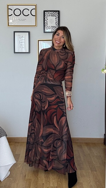 Falda confeccionada en tejido de tul estampado elástico. Talla única, válida desde la 36 hasta la 42.