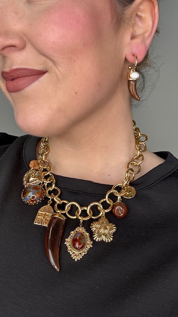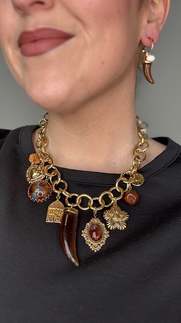 Gargantilla en dorada formada con cadena de eslabones, esta compuesta por diferentes charms de diferentes formas.100% ACERO.