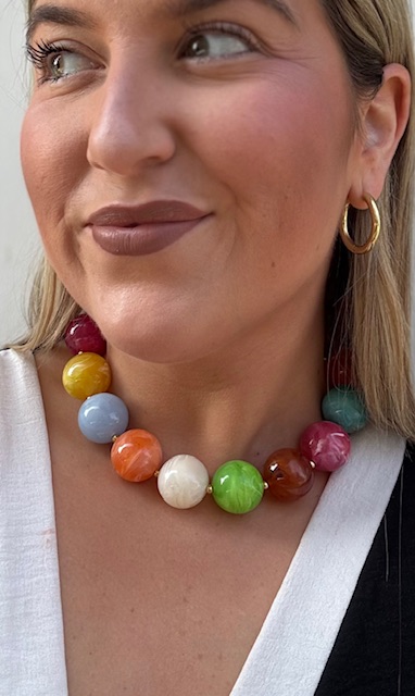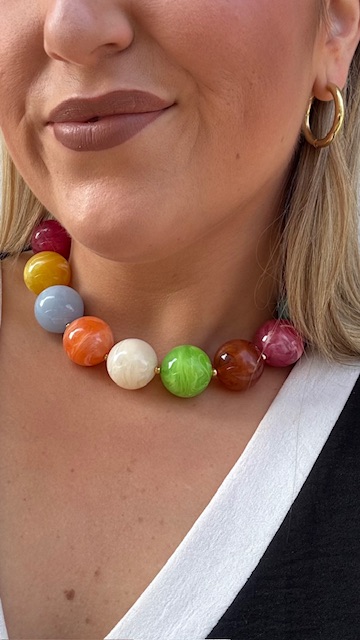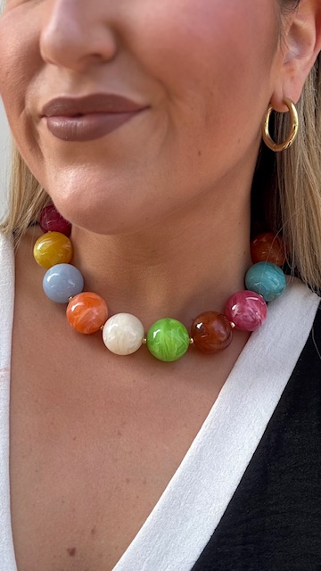 Gargantilla de bolas en color multicolor . 90%PLASTICO+10%ACERO.
