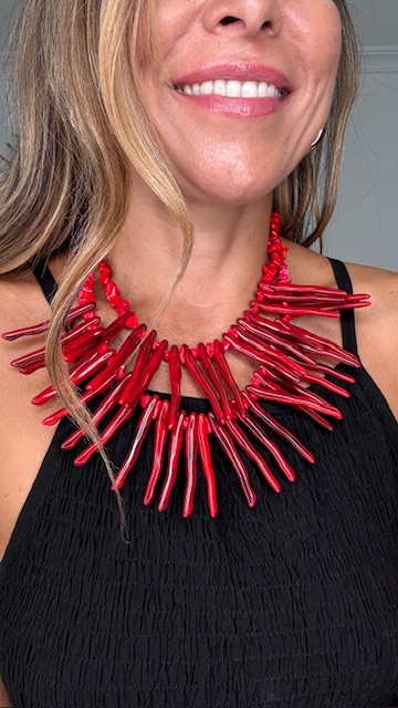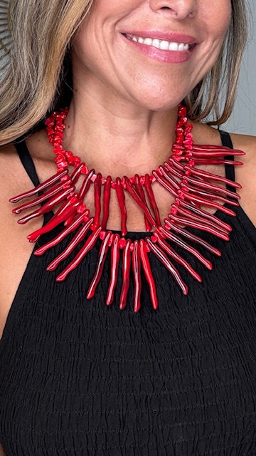 Gargantilla doble de corales en color rojo.