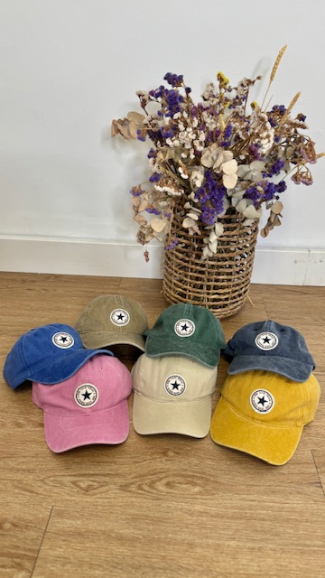 Gorra con logo en la parte delantera en diferentes colores efecto desgaste.