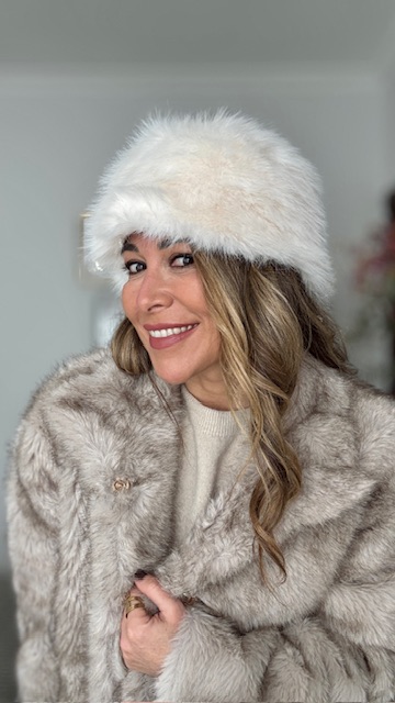 Gorro de pelo sintético en color blanco roto.100% poliéster.