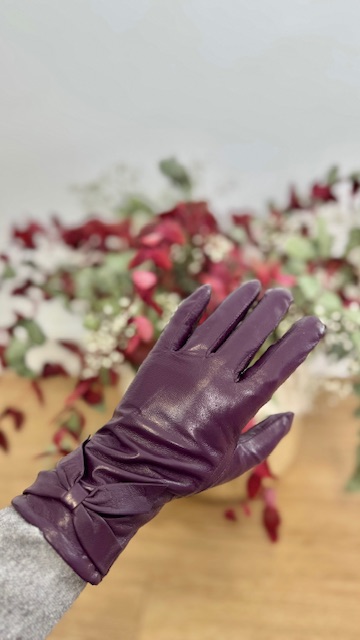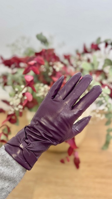 Guantes de polipiel con pelito en su interior en color berenjena.
