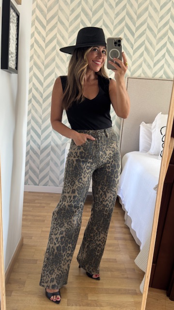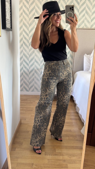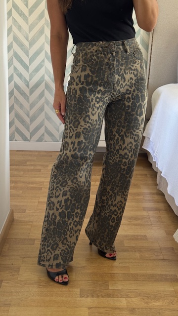 Jeans con estampando animal print con efecto desgastado, llevan elastano y tiro medio alto. Disponible por tallas.