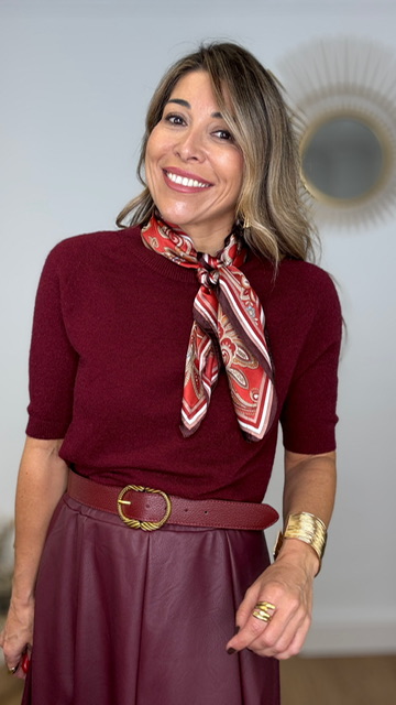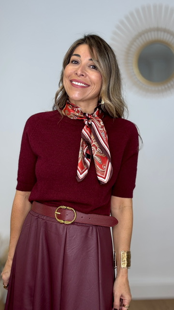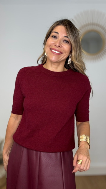 Jersey de punto en manga corta y cuello a la caja. Talla única válida desde la 36 hasta la 44.