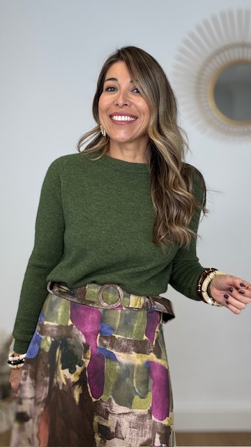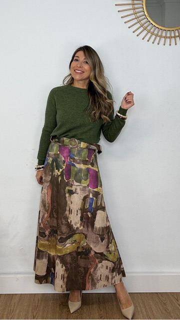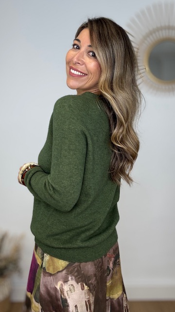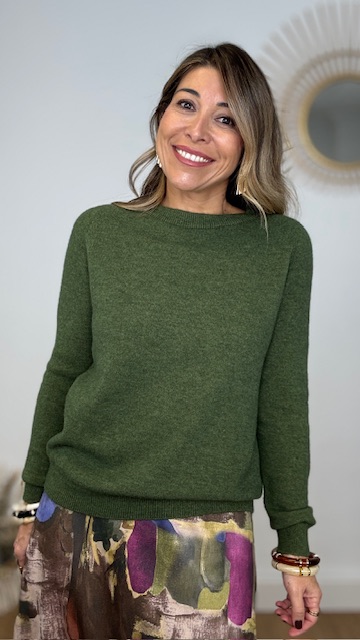 Jersey de punto en manga largo y cuello a la caja. Talla única válida desde la 36 hasta la 44.