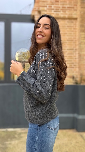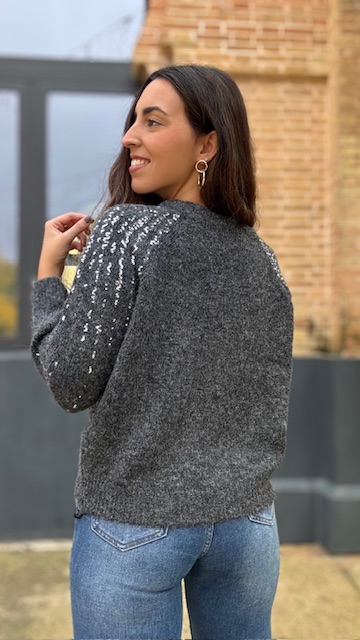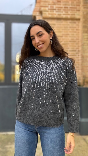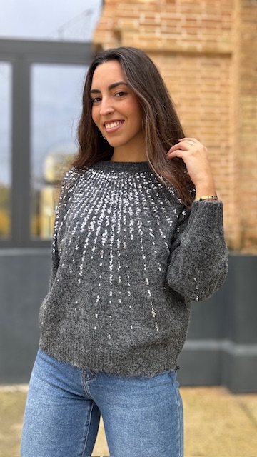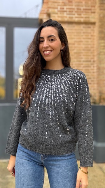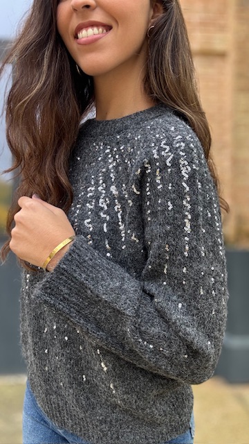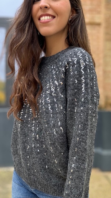 Jersey con lentejuelas en color gris. Talla única válida desde la 36 hasta la 44.