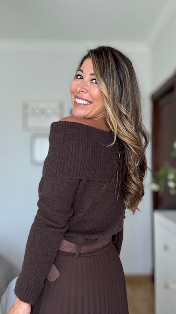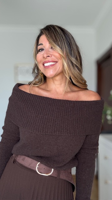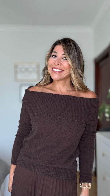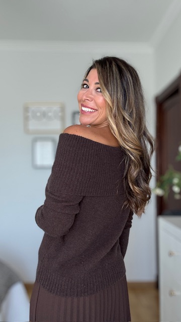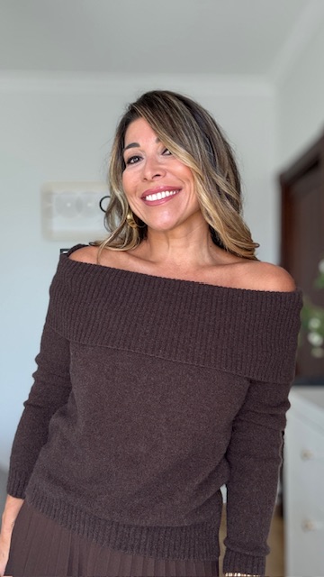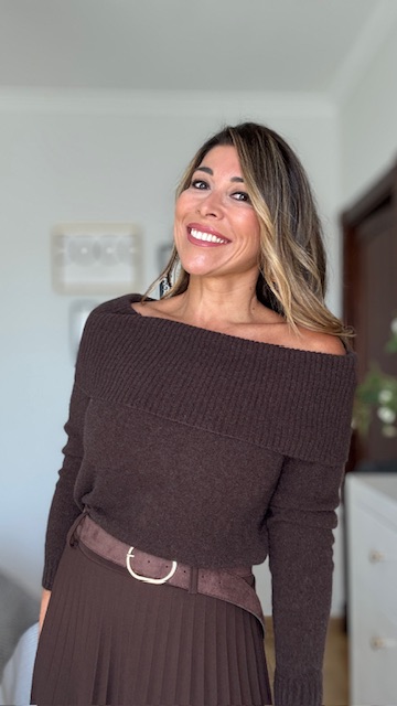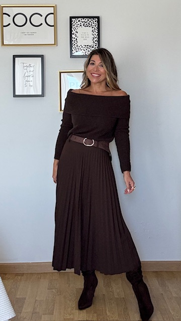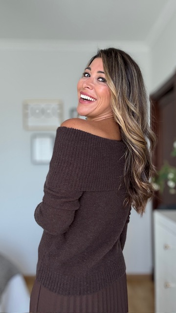 Jersey con cuello barco en color marrón. Talla única válida desde la 36 hasta la 44.