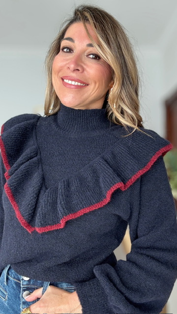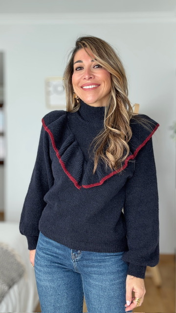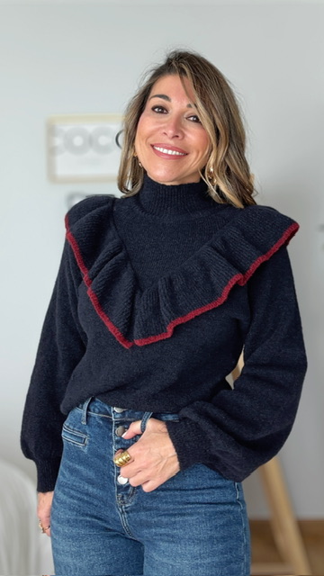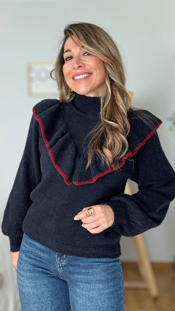 Jersey con volante en la parte delantera en color azul marino. Talla única válida desde la 36 hasta la 44.