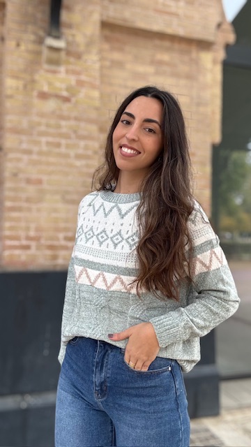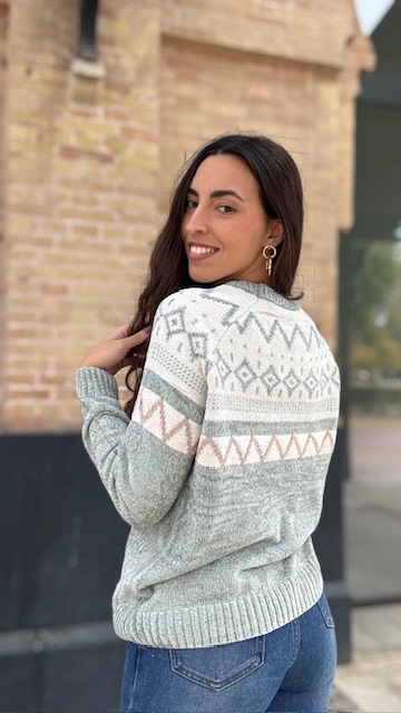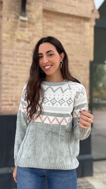 Jersey confeccionada en tejido de greca en color verde . Talla única válida desde la 36 hasta 44.