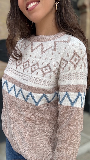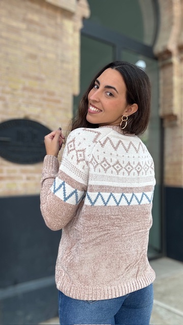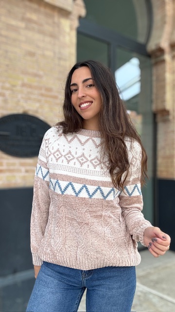 Jersey confeccionada en tejido de greca en color camel. Talla única válida desde la 36 hasta 44.