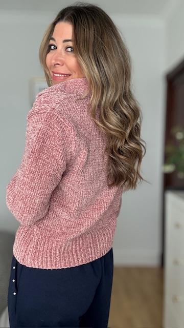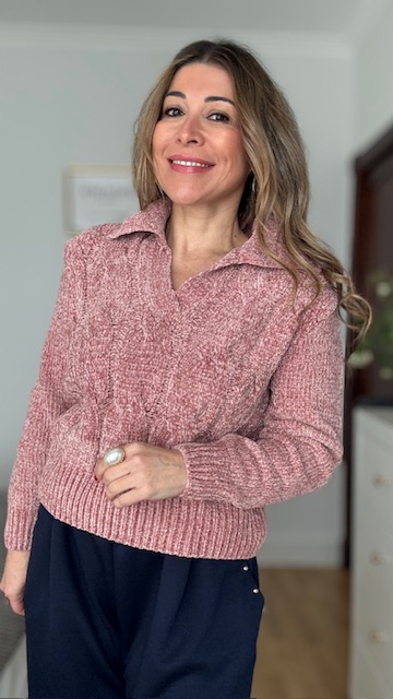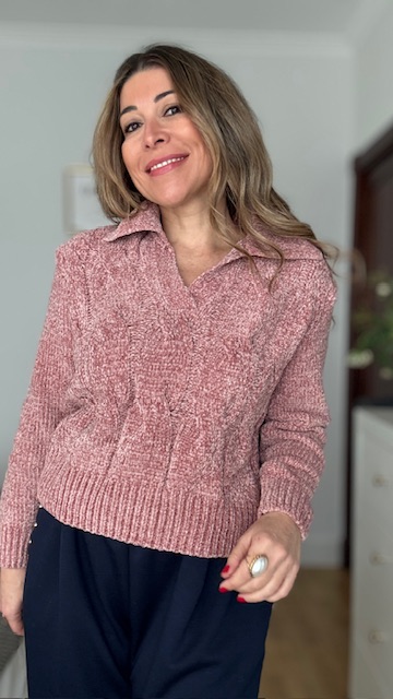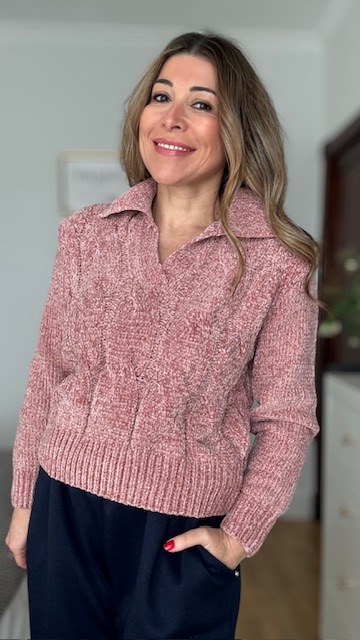 Jersey de chenilla trenzado en color rosa. Talla única válida desde la 36 hasta la 44.
