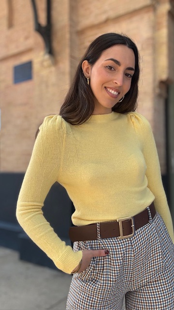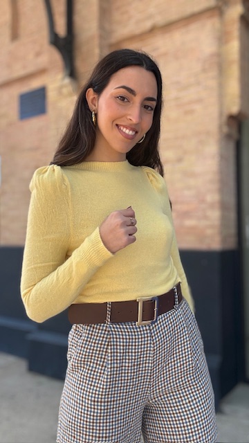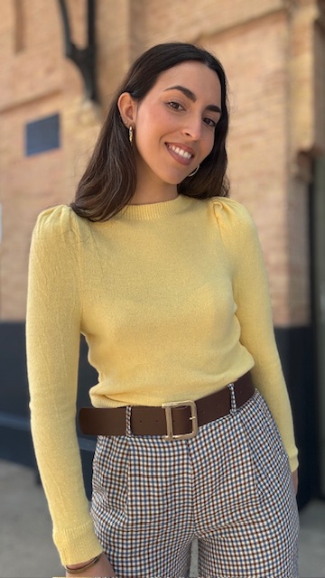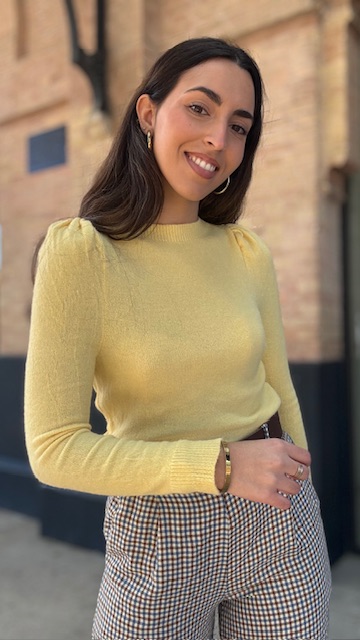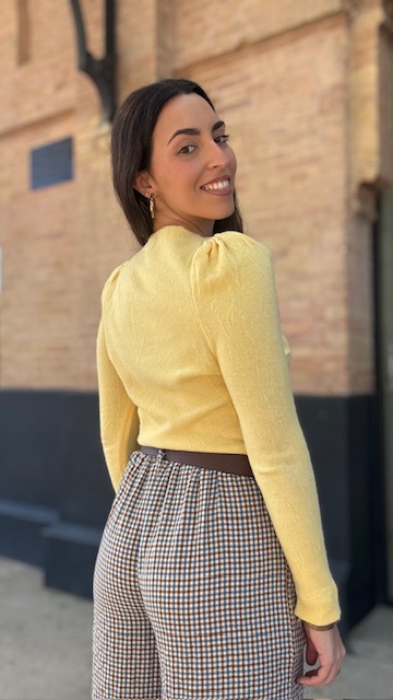 Jersey con mangas abullonadas en color amarillo. Talla única válida desde la 36 hasta la 44.