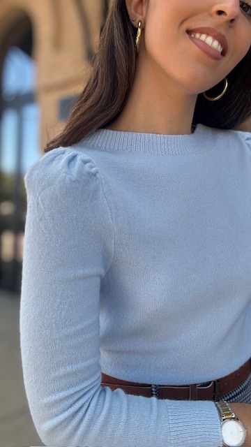 Jersey con mangas abullonadas en color celeste. Talla única válida desde la 36 hasta la 44.