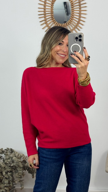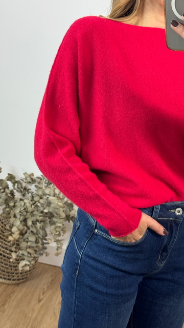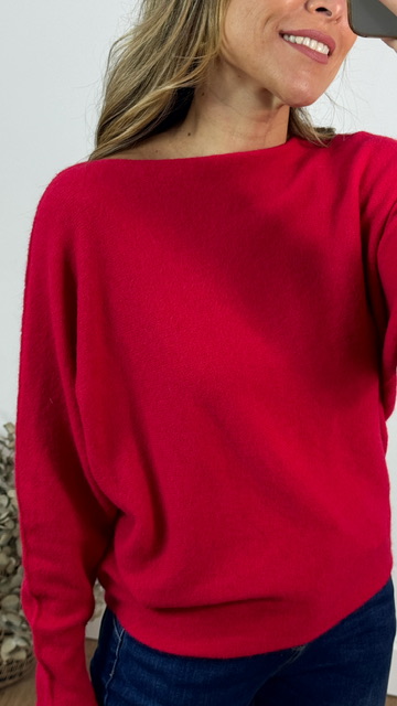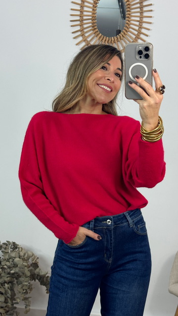 Jersey con cuello barco en color rojo. Talla única válida desde la 36 hasta la 44.