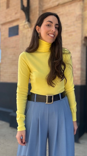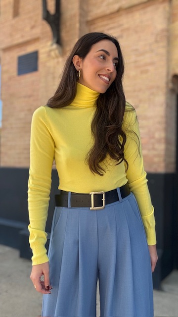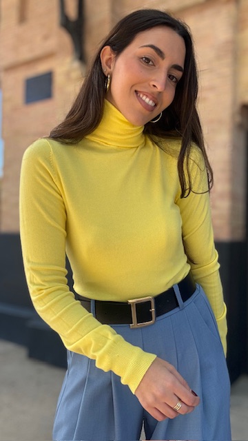 Jersey de punto con cuello vuelto de canalé en color amarillo. Talla única válida desde la 36 hasta la 44.
