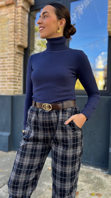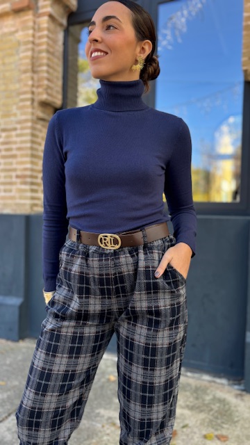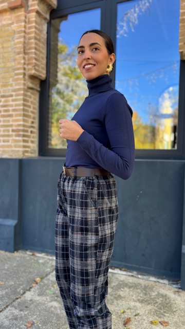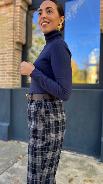 Jersey de punto con cuello vuelto de canalé en color azul marino. Talla única válida desde la 36 hasta la 44.