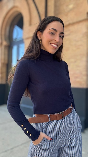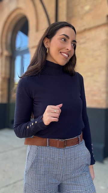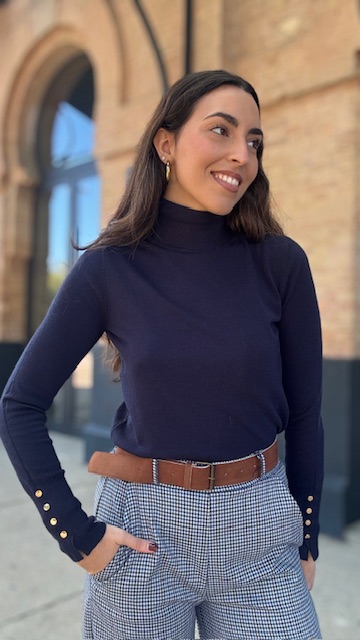 Jersey de punto en color azul marino con botones dorados en los puños . Talla única válida desde la 36 hasta la 44.