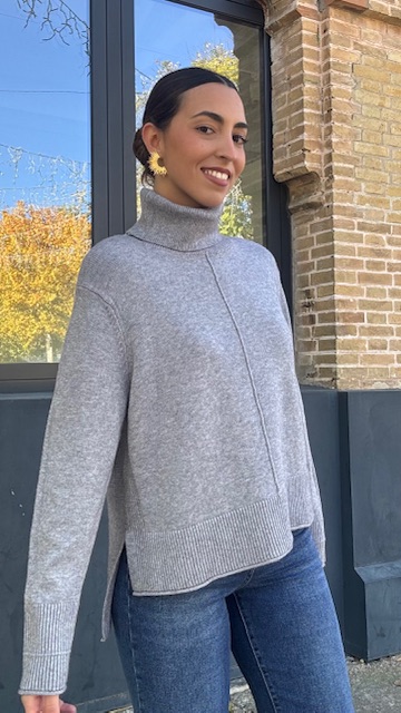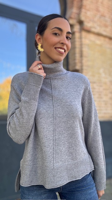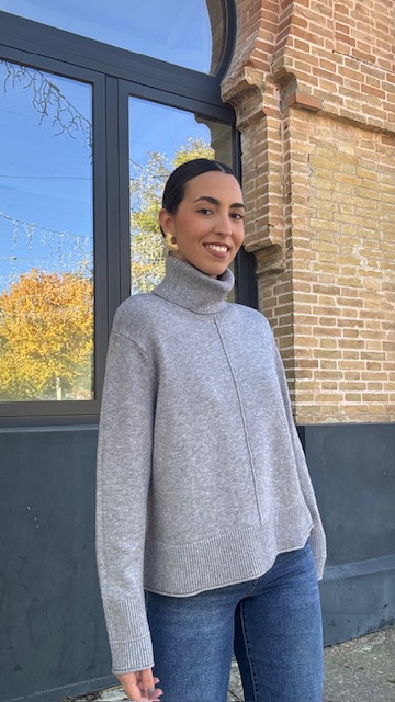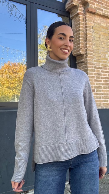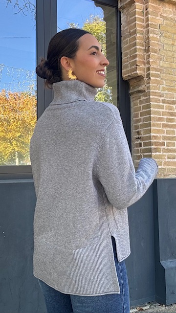 Jersey de punto en color gris con cuello vuelto. Talla única válida desde la 36 hasta la 44.