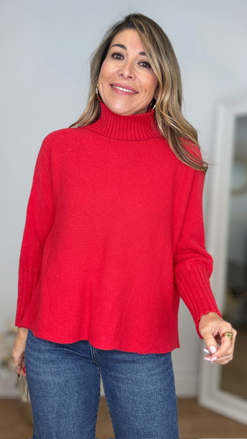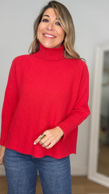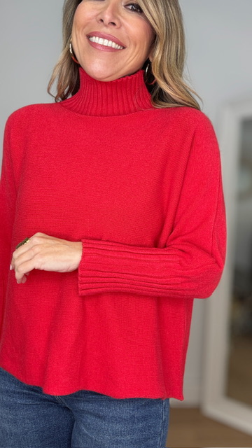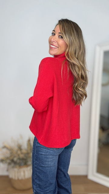 Jersey de punto con cuello en color rojo. Talla única válida desde la 36 hasta la 44.