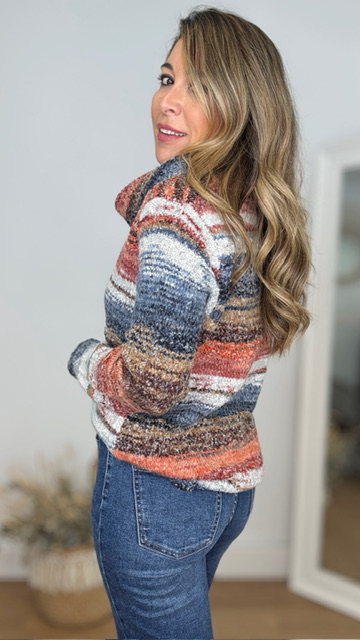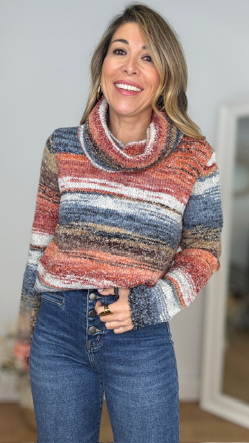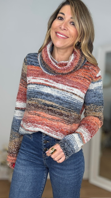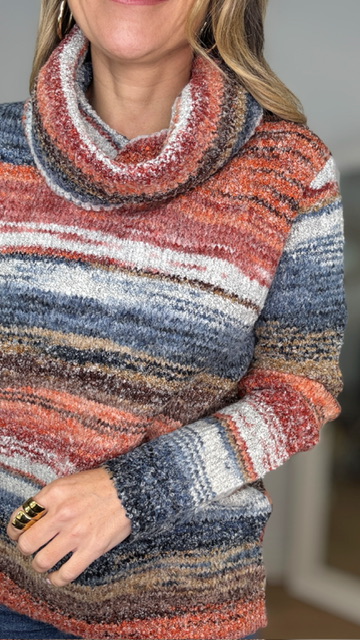 Jersey con cuello cascada multicolor . Talla única válida desde la 36 hasta la 44.