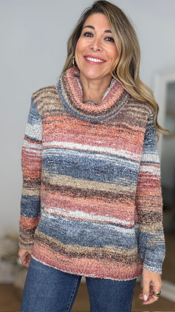 Jersey con cuello cascada multicolor . Talla única válida desde la 36 hasta la 44.