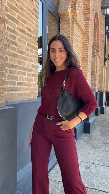 Jersey de hilo efecto gloss en color burdeos. Talla única válida desde la 36 hasta la 44.