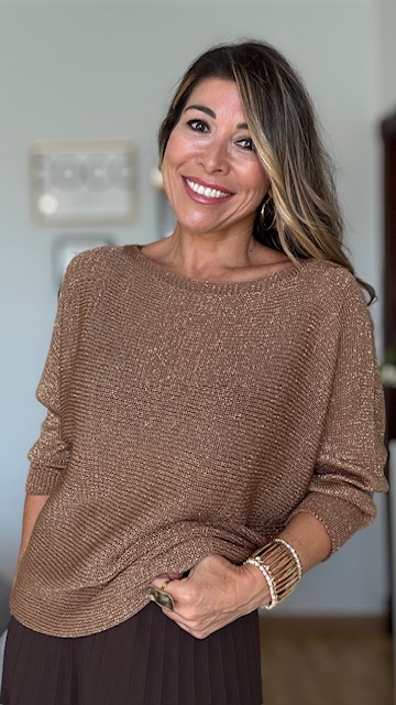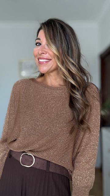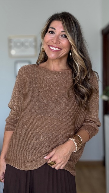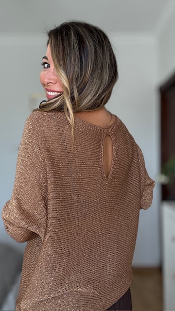Jersey de hilo efecto gloss en color camel. Talla única válida desde la 36 hasta la 44.
