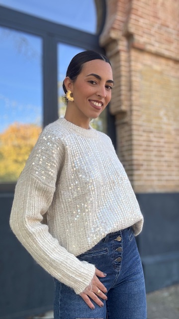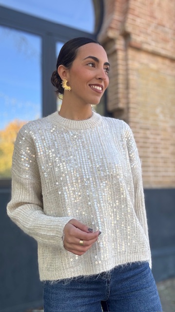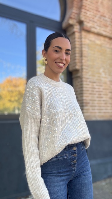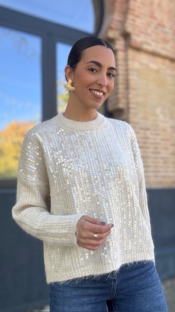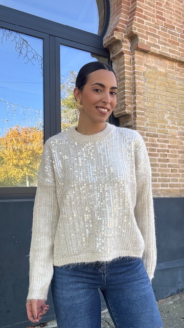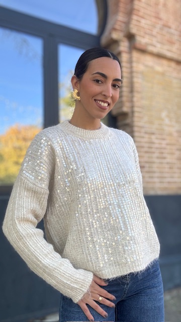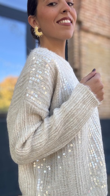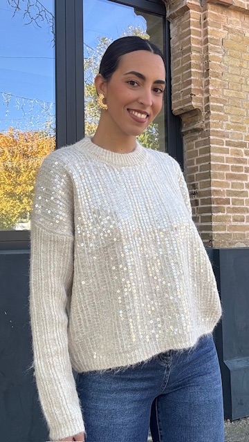 Jersey de lentejuelas en color camel. Talla única válida desde la 36 hasta la 44.