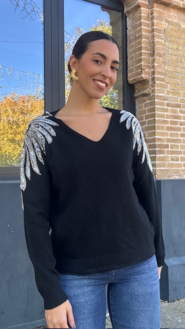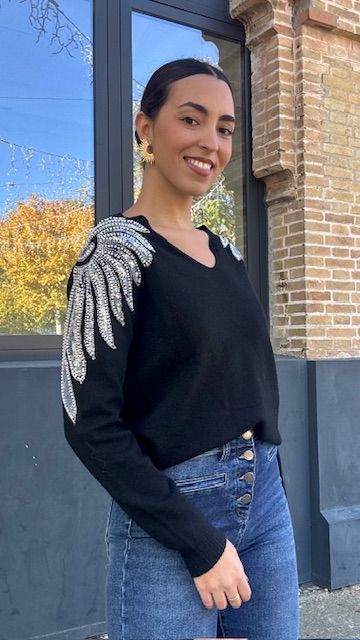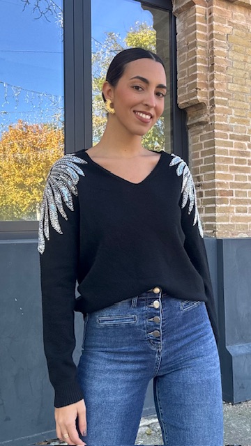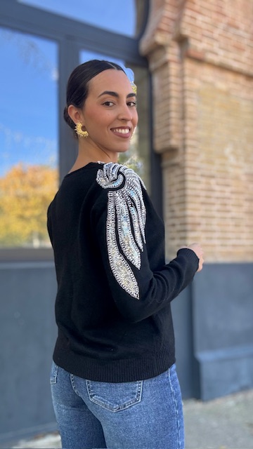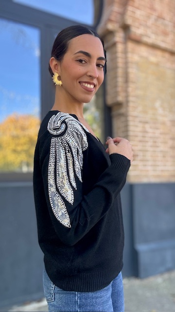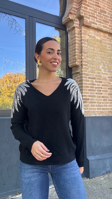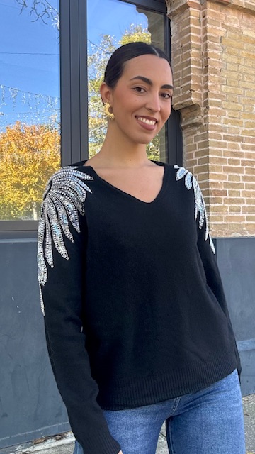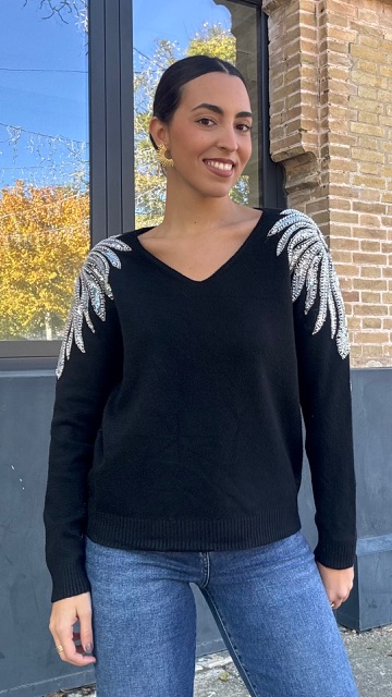 Jersey de punto con dibujo de lentejuelas en color negro. Talla única válida desde la 36 hasta la 44.