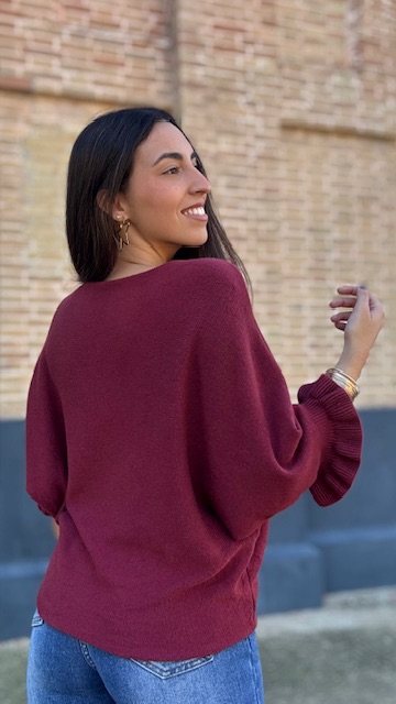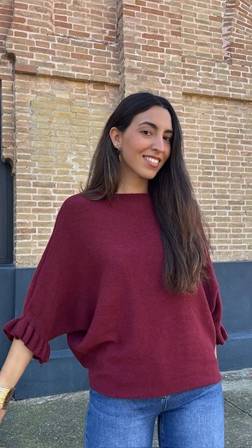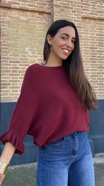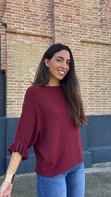 Jersey de punto con detalle de volante en la terminación de la manga. Talla única válida desde la 36 hasta la 44.