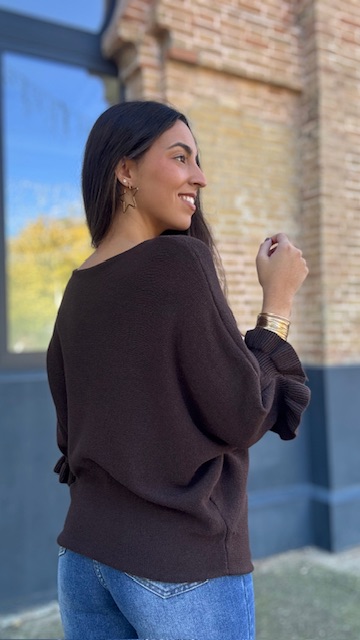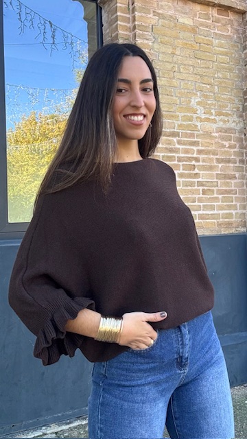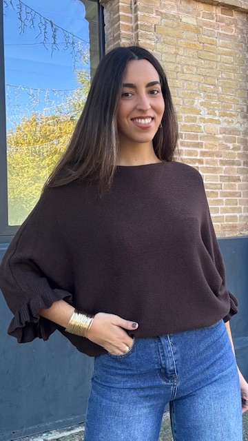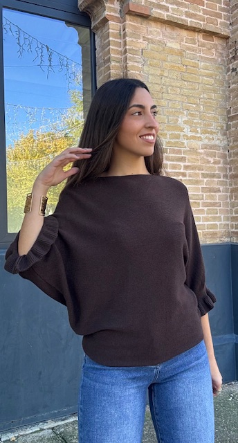 Jersey de punto con detalle de volante en la terminación de la manga. Talla única válida desde la 36 hasta la 44.