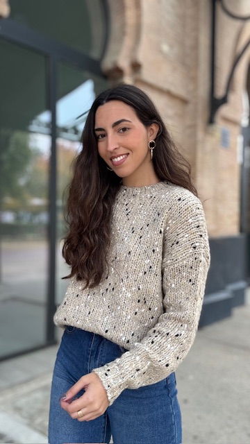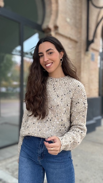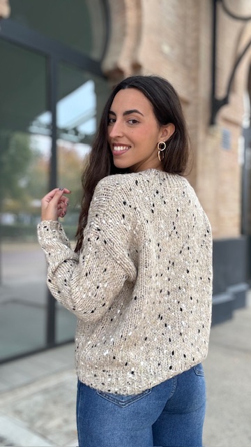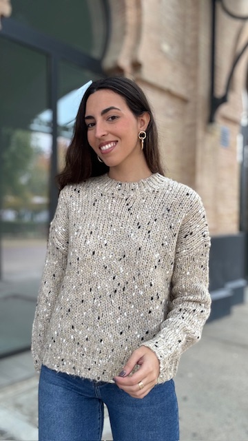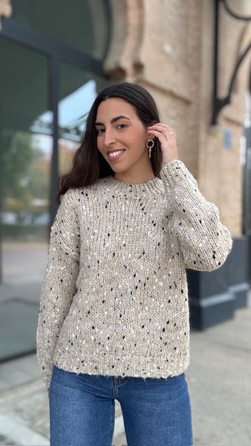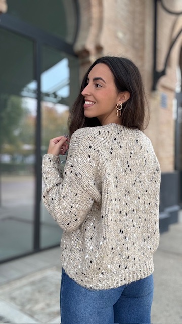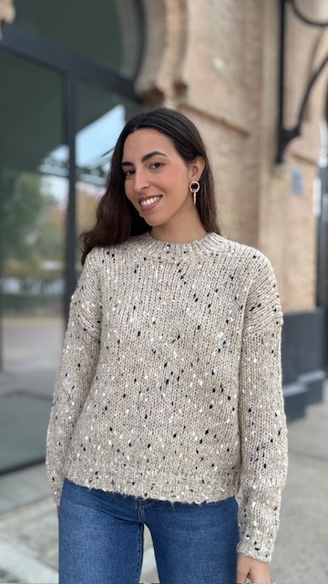 Jersey con detalles en color camel . Talla única válida desde la 36 hasta la 44.