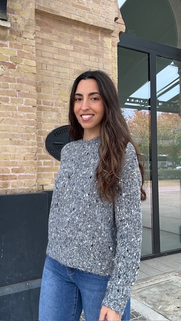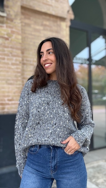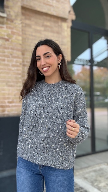 Jersey con detalles en color gris. Talla única válida desde la 36 hasta la 44.