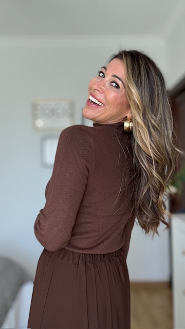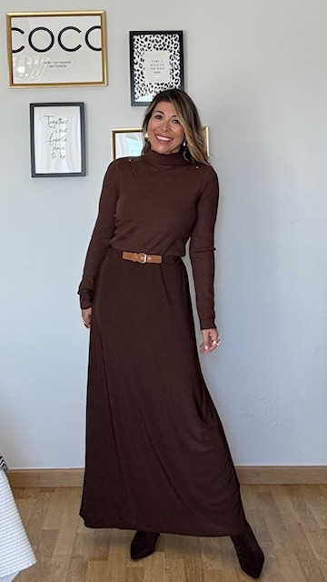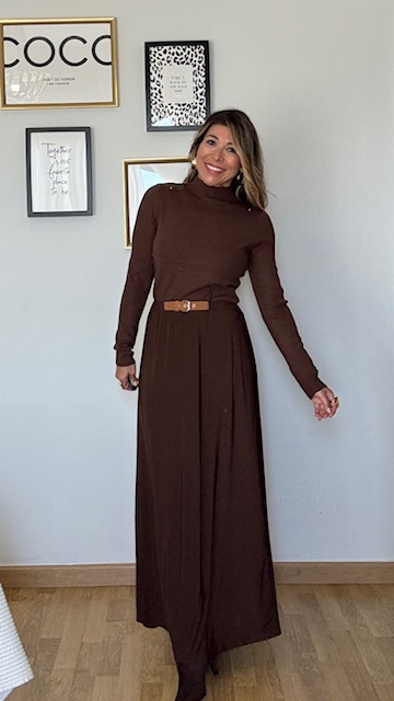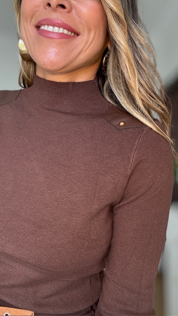 Jersey perkins con detalle en hombreras en color marrón. Talla única válida desde 36 hasta la 44.
