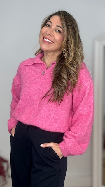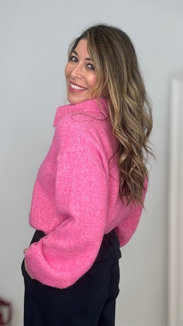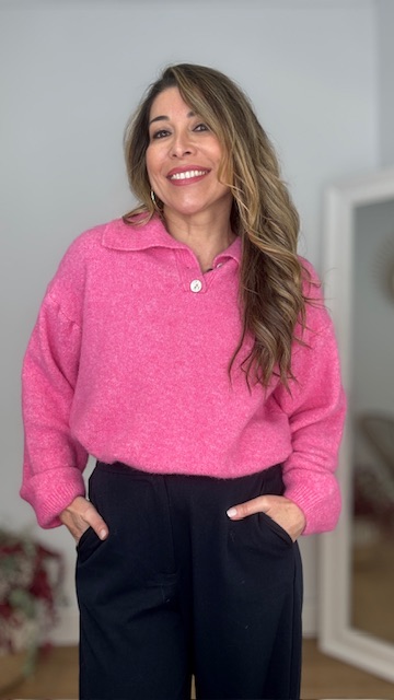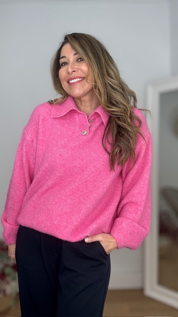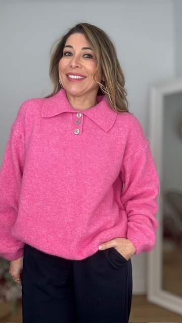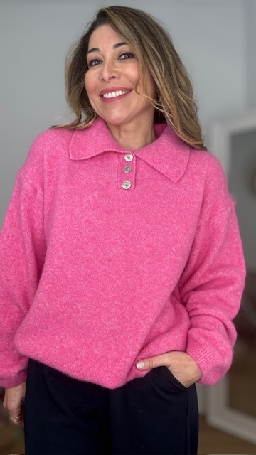 Jersey estilo polo en color rosa chicle. Talla única válida desde la 36 hasta la 44.