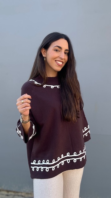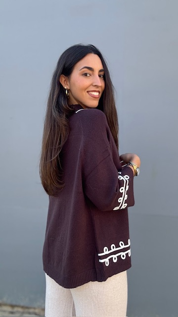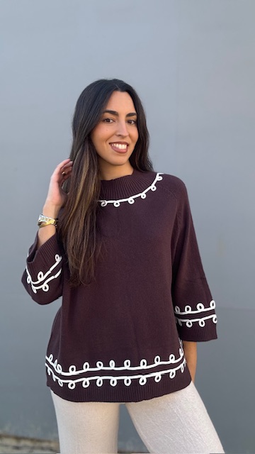 Jersey confeccionado en tejido de punto con adornos en color marrón. Talla única válida desde la 36 hasta la 44.
