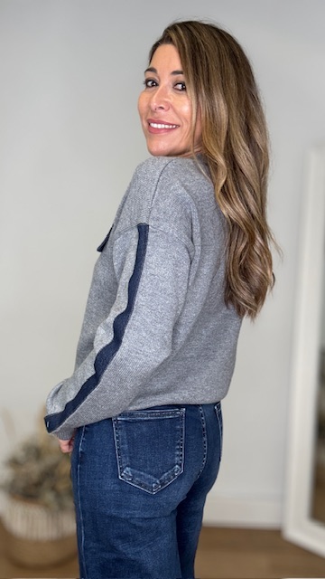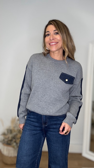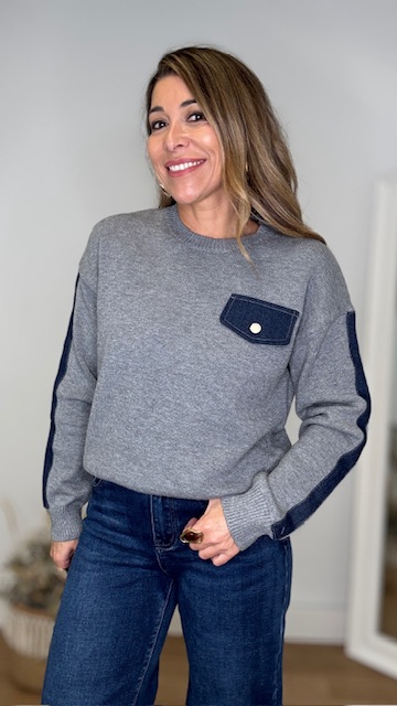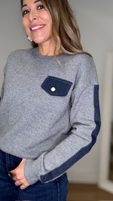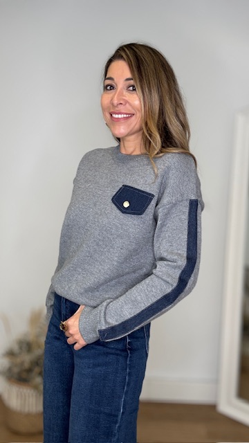 Jersey de punto con falso bolsillo en color gris. Talla única válida desde la 36 hasta la 44.